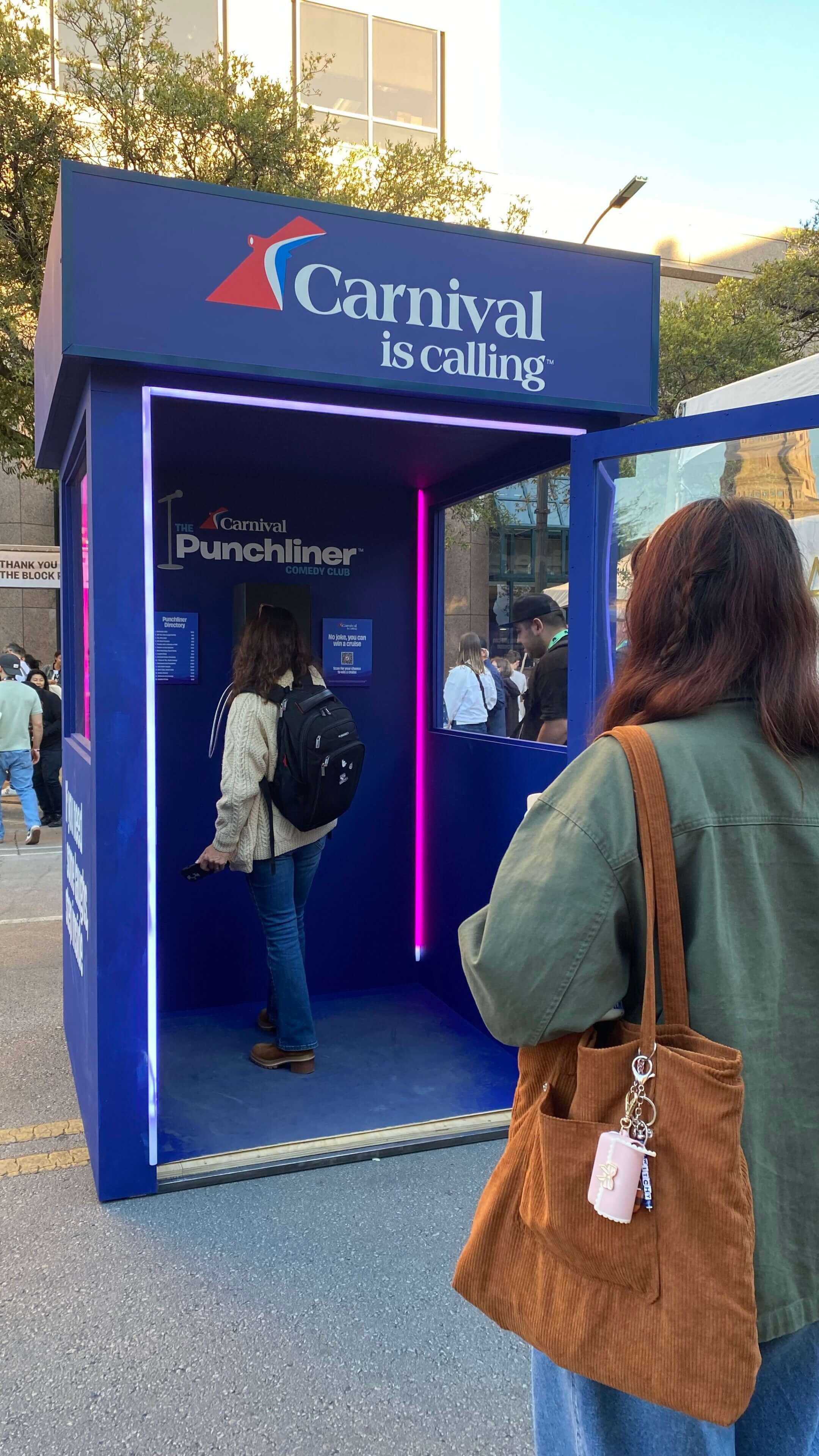 On the heels of their 2025 “Carnival is Calling” campaign featuring Nick Offerman, the cruise line took things a step further with a series of phone booth installations inspired by The Punchliner Comedy Club aboard Carnival ships. Throughout Austin, curious participants dialed their chosen number from a short directory and were rewarded with cruise-inspired jokes or exclusive prizes, like the chance to win a free cruise. A nearby QR code gave all participants a second chance to win in exchange for joining Carnival’s email subscription list.
